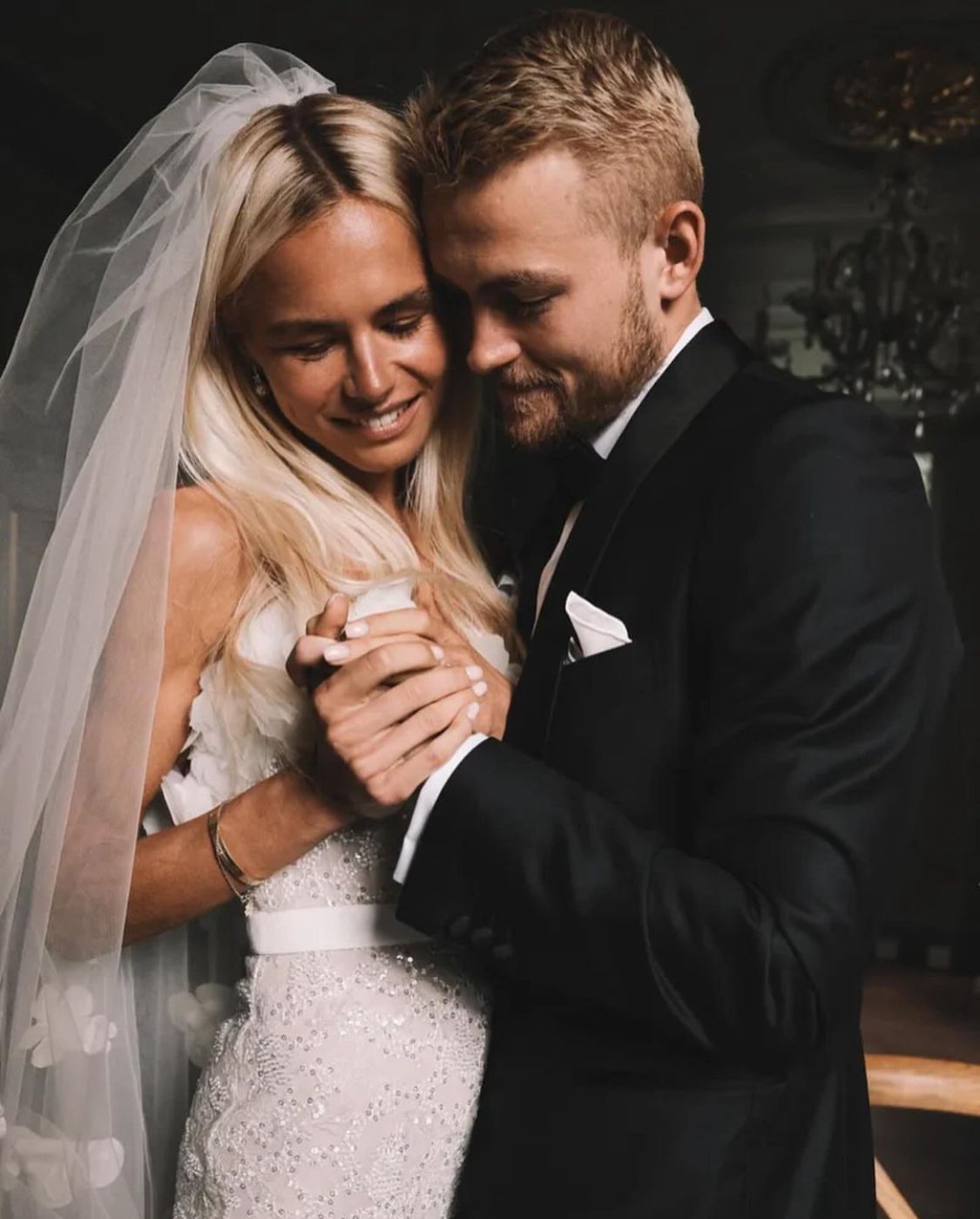 Cầu thủ bóng đá Matthijs de Ligt đã kết hôn 1 tuần trước khi Giải vô địch bóng đá châu Âu bắt đầu.Hậu vệ 24 tuổi của đội tuyển Hà Lan đã kết hôn với Annekee Molenaar, con gái của cựu cầu thủ Ajax và Feyenoord Keje MolenaarMolenaar nói với tạp chí Vogue: “Với giải vô địch châu Âu ở Đức vào mùa hè này, việc lên kế hoạch cho một đám cưới hoành tráng dường như là không thể. Nhưng chúng tôi muốn chính thức trở thành vợ chồng. Đó là lý do tại sao chúng tôi tổ chức buổi lễ này với một nhóm nhỏ.”Dù vậy cặp vợ chồng mới cưới muốn tổ chức hoành tráng sau Giải vô địch châu Âu. Molenaar cho biết: “Chúng tôi đang lên kế hoạch tổ chức một đám cưới lớn kiểu Ý ở Tuscany. Chúng tôi đã sống cùng nhau ở Ý trong 3 năm và đã có khoảng thời gian tuyệt vời ở đó, vì vậy chúng tôi cảm thấy thật tuyệt khi chọn địa điểm này.”Đám cưới chính thức của cặp đôi trẻ chỉ có ông bà, cha mẹ, anh chị em và một vài người chứng kiến.Một đám cưới hoành tráng được dự kiến sẽ diễn ra ở Ý sau EURO 2024.Váy cưới của Molenaar.De Ligt, người đang chơi cho Bayern Munich, trước đây từng chơi cho Ajax và Juventus, đã gắn bó với Molenaar được 5 năm. Hai người đã đính hôn từ năm ngoái.