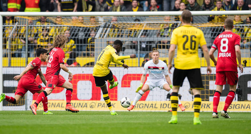 Chỉ ngay phút thứ 7, Dembele đã làm nổ tung sân Signal Iduna Park với bàn thắng mở tỉ số trận đấu. Đáng nói hơn, anh đã có pha xử lý rất mẫu mực. Cướp lấy bóng sau sai lầm của đối phương, anh nhẹ nhàng lừa qua thêm một cầu thủ nữa trước khi lạnh lùng dứt điểm chéo góc hạ gục thủ môn. Đó là sự tự tin đáng kinh ngạc của một cầu thủ mới 19 tuổi.