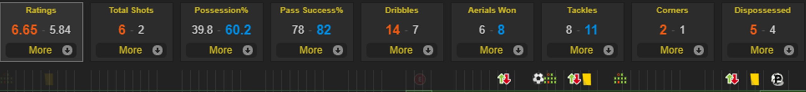 Từ đầu trận cho đến phút 50, Bayern hoàn toàn làm chủ thế trận. Tuy nhiên, Die Roten bất ngờ để cho Gladbach lấn lướt hơn trong giai đoạn sau đó. Không phải ngẫu nhiên mà đoàn quân của Marco Rose sở hữu nhiều thống kê ấn tượng hơn hẳn so với nhà vua nước Đức từ phút 50 trở đi. Gladbach đã có khoảng 40 phút thi đấu cực hay và thành quả cho họ chính là cú đúp của Ramy Bensebaini.