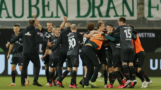Rõ ràng, đội chủ sân Weserstadion có quyền hài lòng về chiến công này. Bởi trước vòng đấu cuối tại Bundesliga, họ vẫn còn nằm trong khu vực rớt hạng. Thế nhưng, bằng sự quả cảm và kiên cường, Bremen đã đánh bại Cologne thuyết phục với tỉ số 6-1. Kết quả này cùng với việc Dusseldorf sảy chân trước Union Berlin giúp đoàn quân của Kohfeldt thoát khỏi “lưỡi hái tử thần”, vươn lên vị trí thứ 16 để tham dự trận play-off trụ hạng.