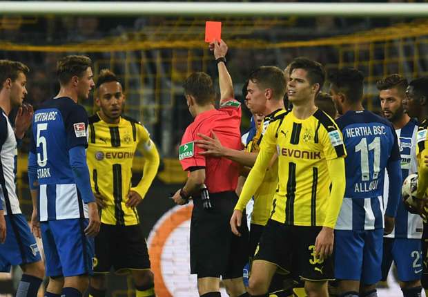 Dortmund đã chật vật cầm hoà đối thủ vô cùng khó chơi Hertha Berlin trên sân nhà. Stocker là người mở tỉ số cho đội khách, trong khi Aubameyang đem về bàn thắng gỡ hoà. Trận đấu này có hai điểm nhấn quan trọng, một là tình huống bỏ lỡ 11m của Aubameyang phút 77, và thứ 2 là tấm thẻ đỏ của Emre Mor phút 83.