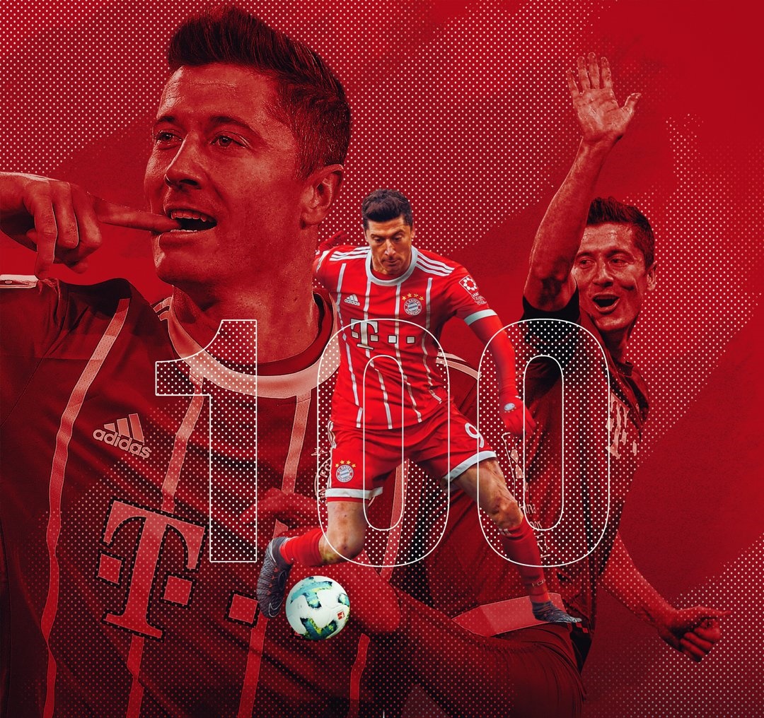Robert Lewandowski đã có tổng cộng 100 bàn thắng cho Bayern Munich tại Bundesliga.