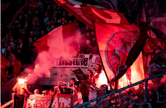 Hình ảnh NHM Bayern gây bạo loạn trên khán đài.