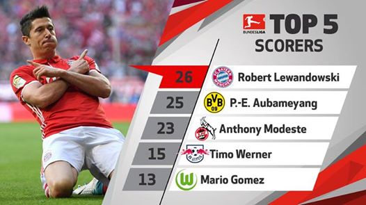 Lewandowski trở lại vị trí dẫn đầu.