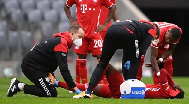 Vì Davies thực hiện sai động tác chân nên anh nhanh chóng gục xuống sân bất chấp không va chạm với đối thủ. Anh ngay lập tức được đội ngũ y tế vào chăm sóc và phải rời sân nhường chỗ cho Lucas Hernandez. Sau trận đấu, kết quả chẩn đoán cho biết Davies gặp chấn thương dây chằng ở mắt cá chân phải. HLV Hansi Flick tiết lộ “viên ngọc thô” này cần khoảng 6 đến 8 tuần để dưỡng thương: