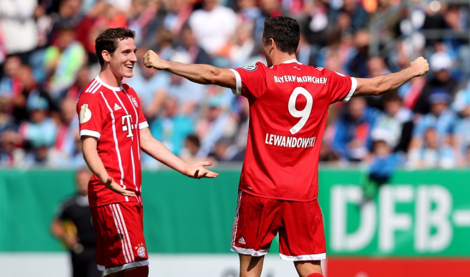 Sau những tình huống tấn công dồn dập từ đầu trận, Bayern Munich phải nhờ đến một tình huống cố định để khai thông thế bế tắc. Robert Lewandowski đích thân thực hiện cú sút phạt, đưa bóng đi rất căng và thủ thành của Chemnitzer không thể phán đoán kịp thời vì một đồng đội băng vào không đúng lúc.