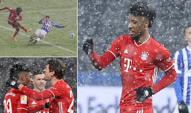 Rạng sáng nay, Bayern Munich đã đánh bại Hertha Berlin với tỷ số 1-0 ở vòng 20 Bundesliga. Kingsley Coman là tác giả của bàn thắng duy nhất ở phút 21 giúp Hùm xám xứ Bavaria giành trọn vẹn 3 điểm. Sau 20 trận đấu, nhà ĐKVĐ dẫn đầu BXH Bundesliga với 48 điểm, hơn đội thứ 2 RB Leipzig 10 điểm.