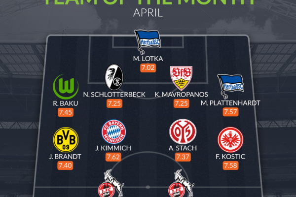 Đội hình tiêu biểu Bundesliga tháng 4: Người thừa Arsenal, sao Bayern duy nhất
